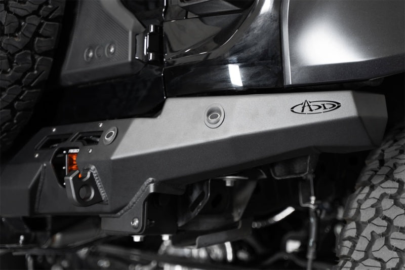 The Phantom Series Rear Bumper features a knife's edge, low-profile design to complement its aggressive stance. OEM features including the parking sensors, hitch, & trailer harness/plug are retained in the design. A license plate bracket is included, which relocates the license plate up and away from the bumper along the tailgate. The factory license plate light is retained, and relocated in this new location. The contours of the Phantom enables you to run a 37-inch spare tire on the factory carrier. 3-inch cube lights can be mounted on each side of the bumper in recessed light mounts for supplemental rear lighting. 1-inch thick clevis mounts that take ¾-inch D-ring shackles provide recovery options if needed. All of our bumpers are finished in a durable dual-stage hammer black powder coat. As always, this is fully bolt-on and Made in America.