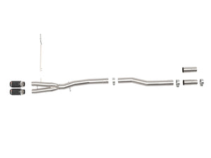 This cat-back exhaust system is constructed of 3 IN - 2-1/2 IN mandrel-bent 304 stainless steel tubing for maximum strength and durability. This system features a 304 stainless steel muffler, producing a aggressive sound. Finishing off this exhaust system are dual 3-1/2 IN diameter carbon fiber clamp-on exhaust tips. The tips features a laser etched aFe POWER logo for a unique style. This system produces an aggressive sound unleashing all available horsepower and torque. Utilizing factory style this system is a direct bolt-on system, which requires no cutting or modifications for a hassle-free installation. This cat-back exhaust system uses a heavy duty flex pipe with an internal interlock liner for added strength and durability. State-of-the-art computer-aided design technology is utilized for precise vehicle fitment. 100% MIG-Welded for race-proven strength and durability.