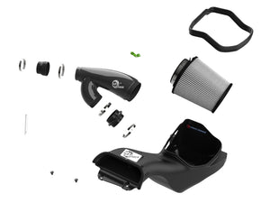 aFe POWER Track Series Intake Systems, the pinnacle of innovation in open-element intakes. Showcasing a one-piece housing that shields from elements and heat, seamlessly fitting into the engine bay. The highlight of the Track Series is its carbon fiber intake tube, meticulously CAD-designed and refined through dyno-testing. The result is a visually striking, lightweight system that delivers exceptional performance and a captivating induction sound. This 9” tall 360-degree radial flow air filter features a 5-1/2" flange and our oil-free Pro DRY S media with three layers of synthetic media for maximum convenience. Its progressive layering provides great filtration efficiency and dust holding capacity, while not requiring the use of oils. This media is best suited for street use. Its inverted top makes for more filter surface area, resulting in longer service intervals. The included massive air filter is surrounded by an open-element XLPE (Cross-linked Polyethylene) polymer housing that minimizes warm engine air for maximum performance. Its open design allows for easy viewing of the air filter, and an aggressive air intake sound. The built-in air intake scoop captures cold air directly from the top of the radiator support thanks to its huge opening. The lightweight tube is computer-designed to achieve maximum power gains while maintaining a perfect fit. Manufactured from 100% twill weave carbon fiber, it features zero fiberglass and is clear-coated for the highest quality construction. The computer designed system utilizes factory mounting locations, minimizing the use of unnecessary hardware and ensuring a perfect fit every time. Its innovative design makes for a hassle-free, direct bolt-on installation process that requires no cutting or drilling. Stainless-steel clamps are included for strength, and premium silicone couplers allow for ample flexibility.