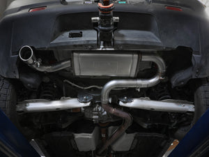 This axle-back exhaust system is constructed of 2-1/2 IN mandrel-bent 304 stainless steel tubing for maximum strength and durability. This system features a high-flow 304 stainless steel muffler, producing a deep sound. Finishing off this exhaust system is a 3-1/2 IN diameter black 304 stainless steel clamp-on exhaust tip. The tip features a laser etched aFe POWER logo for a unique style. This system produces a deep sound unleashing all available horsepower and torque. Cutting is required, see instruction sheet for further information. Utilizing factory style hangers this system mounts directly to factory mounting locations for a hassle-free installation. State-of-the-art computer-aided design technology is utilized for precise vehicle fitment. 100% MIG-Welded for race-proven strength and durability