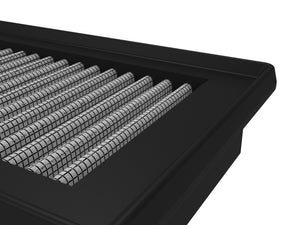 This filter features three layers of oil-free synthetic media and requires no oil during maintenance to provide maximum convenience. Its progressive layering provides great filtration efficiency and dust holding capacity. This media is best suited for street use. Pro DRY S filters are easily recharged with aFe's POWER CLEANER. aFe POWER performance air filters use a rounded, evenly spaced pleat design which allows for more usable filter surface area, providing increased flow and greater dust holding capacity. This pliable sealing surface conforms to even the most uneven filter housing, making for a perfect filter fit and sealing surface every time. This design eliminates the use of gaskets or sealants and always goes back to its original form. All aFe POWER flat panel performance air filters are constructed with a full 360-degree polyurethane frame. Unlike other materials that degrade after repeated heat cycles in an engine bay, polyurethane maintains its original molded shape.