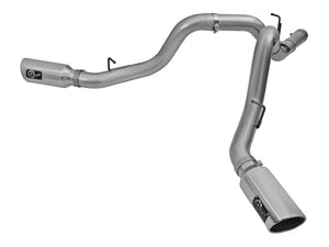 Interested in a new exhaust system for your LML Duramax? Check out the Large Bore-HD dual DPF-Back exhaust system by aFe. This system is constructed from 4" mandrel-bent 409 stainless steel tubing and uses high quality band clamps and OE-style bayonet hangers. This unit uses all factory mounting locations and comes with a bolt-on bracket that supports the driver side tailpipe. This provides for a quick, hassle-free installation with no modification necessary. Also included in this exhaust system are dual massive 6" polished 304 stainless steel tips with laser-cut stainless steel aFe power badges. Large Bore-HD exhaust systems are the perfect combination of performance, fit and value. Single To Dual Exhaust Conversion: This exhaust is designed to convert the standard single exhaust into an aggressive dual exhaust. Fits With Spare Tire: This exhaust system fits perfectly without relocating the spare tire. OE Fit: OE-style bayonet hangers are used to maintain a stable pipe location during high vibration and high heat conditions. The bayonet tip holds the hanger bushing in place for an OE-style fit that does not change with time. Flow and Performance: This Large Bore-HD exhaust system is constructed from 4" mandrel-bent stainless steel tubing for maximum flow. Smooth transition bends allow for low turbulence, increasing horsepower, torque and lowering EGT's. Polished Tips: Finishing off the exhaust are dual high luster, polished 304 stainless steel slash-cut tips. This tip features a laser-cut stainless steel aFe power badge for an aggressive style.