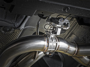 Aggressive Sound: A free-flowing, transverse muffler is used to absorb high pitch tones producing a powerful sound and unleashing all available horsepower and torque. The muffler is finished with a high-temp powder-coated metallic black finish and a stamped aFe power logo. Exhaust Valve: This axle-back exhaust system incorporates a factory style exhaust valve which uses the factory exhaust valve motor (not included). The valve helps regulate, direct and control the flow of exhaust gases by opening, closing, or partially obstructing passageways depending on throttle position for maximum performance. Simple Installation: This MACH Force-Xp axle-back exhaust system uses factory mounting locations providing stability and a hassle-free installation. Quad 3-1/2" Stainless Steel Tips:Finishing off this system are Quad 3-1/2" diameter, 304 stainless steel tips with laser-etched aFe POWER logos. Brushed 304 SS Construction: The performance axle-back exhaust system is constructed of 2-1/2" to 3" mandrel-bent, brushed 304 stainless steel tubing for maximum performance, corrosion resistance and strength eliminating cracking.