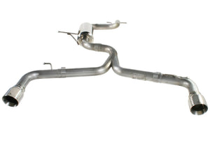 aFe is proud to introduce the Dual Cat-Back Exhaust System for the 2012-2013 Volkswagen Beetle with the L4-2.0L Turbo engine. In recent testing this Mach Force XP cat-back exhaust system produced 7 horsepower and 14 lbs. x ft. of torque. This exhaust system is constructed out of mandrel-bent, 2.50 in. 304 stainless steel and includes MIG welded hangers and OE-style band clamps for a simple, leak-free, bolt-on installation. A huge 6 in. round high-flow muffler is used to keep exhaust drone to a minimum while maintaining a sporty sound. aFe utilizes dual 4 in. double wall, polished, stainless steel tips with an aFe laser-etched logo which provides an aggressive yet elegant look. All aFe exhaust systems are engineered and manufactured in our Corona, California manufacturing facility.