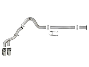 This DPF-back exhaust system is constructed of 4" mandrel-bent 409 stainless steel tubing for maximum strength and durability. Finishing off this exhaust system are dual 5" diameter polished 304 stainless steel intercooled clamp-on exhaust tips. The tips features an aFe POWER logo plate riveted on for a unique style. Some cutting may be required, see instruction sheet for further information. Utilizing a factory style flange and hangers this system mounts directly to factory mounting locations for a hassle-free installation. OE-style bayonet hangers are used to maintain a stable pipe location during high vibration and high heat conditions. The bayonet tip holds the hanger bushing in place for an OE-style fit that does not change with time. 100% MIG-Welded for race-proven strength and durability. Installation Instructions