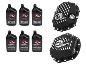 aFe Power’s Pro Series front and rear differential covers bring performance-driven protection to your drivetrain. Constructed from durable cast aluminum and designed with reinforced ribs, these covers offer enhanced strength and improved heat dissipation for demanding driving conditions. This is a complete, ready-to-install kit that includes front and rear differential covers, all necessary hardware, and 6 quarts of 75W-90 premium PROGUARD Synthetic gear oil —everything you need for a full service in one convenient package. The supplied gear oil exceeds the performance requirements of API GL-5 recommended for both open and limited slip applications. These covers have an increased oil capacity over stock for better performance over a longer duration. Built-in internal and external fins transfer heat from the oil to the outside air for maximum cooling. This system incorporates magnetic drain and deep reach fill plugs to capture loose particles for maximum protection. Each cover uses a calibration plug set to the factory oil level to eliminate overfilling. Each cover includes an oil level sight glass that allows for quick and easy oil inspection. Installation Instructions