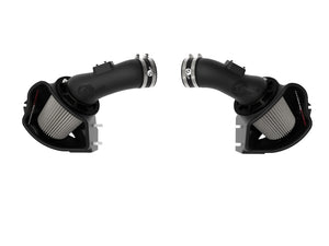 Large Three Layer Performance Air Filters: These 360-degree radial flow air filters feature a 4" flange and our oil-free Pro DRY S media with three layers of synthetic media for maximum convenience. Their progressive layering provides great filtration efficiency and dust holding capacity, while not requiring the use of oils. This media is best suited for street use.Dual Heat-Resistant Housings: The included massive air filters are surrounded by open-element XLPE (cross-linked polyethylene) polymer housings that minimize warm engine air for maximum performance. Their open design allows for easy viewing of their air filter, yet creates a heat-blocking seal when the vehicle's hood is closed.Optional Dynamic Air Scoops: In addition to the system's built-in air inlets, optional Dynamic Air Scoops (sold separately) are available to bring more cool air from the front of the vehicle into the intake housing (PN 54-12489-C).Dyno-Tuned Intake Tubes: This system features high quality, computer-designed, dyno-tuned intake tubes to achieve maximum power gains while maintaining a perfect fit. Their XLPE material is heat soak resistant and extremely durable.Hassle-Free Installation: This is a direct fit intake system that utilizes factory mounting points and requires no cutting or modifications. All necessary clamps, couplings, and hardware are included. Its revolutionary design, featuring our patent pending filter-to-housing interface, uses half the number of parts of a traditional cold air intake system.