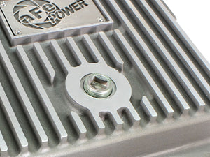 aFe Powers new deep transmission pan brings performance engineering to the protection of your trucks transmission. This transmission pan has additional capacity for 3 to 4 more quarts over stock at the factory line, a magnetic drain plug and a 1/8" NPT port for your temperature sensor. Built-in internal and external fins transfer heat from the fluid to the outside air for maximum cooling. This transmission pan is constructed out of durable die-cast A380 aluminum with reinforced ribs and a wrinkle black powder-coating for maximum strength and styling.