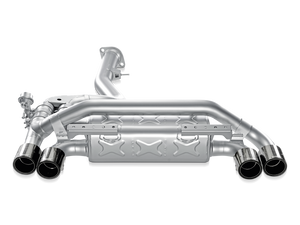 Utilizing a single muffler arrangement, the fully titanium Akrapovic Slip-On is designed to be modular. In its basic mode, all exhaust gases flow through the muffler, giving you a deeper rumble of an exhaust note compared to stock without any drone. The muffler system is further enhanced by the optional sound kit for adjustable sound from the cockpit.