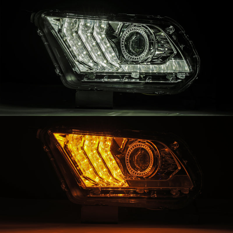 AlphaRex 10-12 Ford Mustang PRO-Series Projector Headlights Plank Style Chrome w/Top/Bottom DRL - 880111