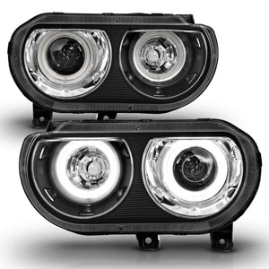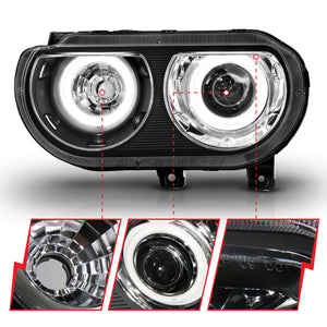 ANZO 2008-2014 Dodge Challenger Projector Headlights w/ Halo Black (CCFL) - 121308