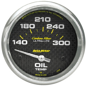 Autometer Carbon Fiber Oil Temp 66.7mm 2 5/8in Short Sweep Electronic 300 Deg F Temperature Gauge - 4848