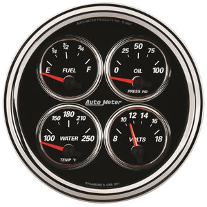 Sometimes Space Is Limited. The Autometer Quad Gauge Provides A Solution To Limited Dashboard Space While Providing A Clean Look. Individual Autometer Air Core Meter Movements For Each Function Provide The Accuracy And Durability Required By Even The Most Demanding Applications. Includes A Single Wire 1/8" Npt Temperature Sender And A 1/8" Npt Oil Pressure Sender. The Voltmeter Reads From 8-18V On Negative Ground Electrical Systems And Fuel Level Resistance Range Is 240 Ohms Empty To 33 Ohms Full (Compatible With Autometers 3262 Fuel Level Sender). Installation Instructions