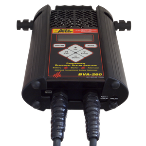 One of the most technologically advanced handheld testers currently available, the BVA-260 sets the bar for accuracy, speed and ease of use. Using our patented Digital Pulse Load" technology to deliver a BCI compliant true load test, the BVA-260 can precisely diagnose the battery, starting and charging system in under 82 seconds! Includes a built in infrared battery temperature sensor to improve testing accuracy. Features Bite Rite Clamp design to enable easy connection to top post batteries. Smart USB port for easier, more efficient data retrieval and software upgrades.