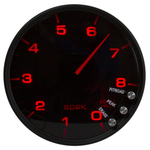 Autometer Spek-Pro Gauge Tachometer 5in 8K Rpm W/Shift Light & Peak Mem Black/Smoke/Black - P23852
