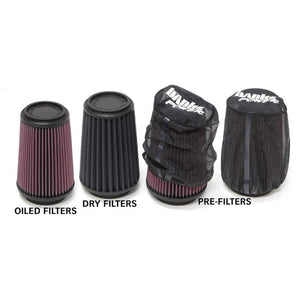 Banks Ram-Air Superiority. 4.0L 6-CYL: 1997-06 WRANGLER. Banks Ram-Air Intake System replaces the factory's flat panel filter with a large conical lifetime filter that provides maximum high-flow filtration. The Ram-Air's opening is over twice as big as stock's, and without the 90-Degree detours that choke airflow and kill power. The huge inlet, enclosed housing and much larger tubing reduce restrictions, dramatically improving airflow to the cylinders. The results are impressive: Banks Ram-Air Intake more than doubles the factory intake's airflow, improving the Jeep's power and fuel economy. And Banks Ram-Air is designed to accommodate engine movement, which prevents component damage for reliable service life. Get an extra layer of filtration protection by adding a pre-filter to your order!