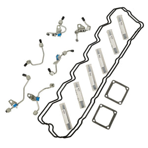All in one kit for doing an injector install on a 5.9L Cummins engine. Includes injector line set, Bosch fuel injector supply tubes (6), valve cover gasket and intake air heater gaskets (2).