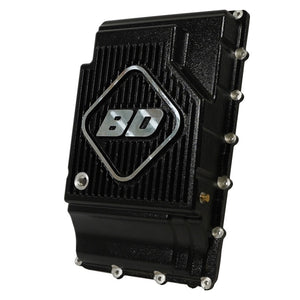 High volumes of cool oil equate to long transmission life. BD's transmission pans increase oil capacity, while aluminum construction and heat-dissipating fins keep the temperature down. As an added bonus, the pan's increased rigidity prevents case twisting. Kit includes screws, nuts, temperature port plug, magnetic drain plug, OEM gasket, and OEM heat shield studs. Installation Instructions Installation Instructions