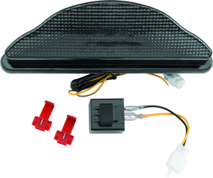 Designed to heighten the effectiveness of your current turn signals and improve visibility. Ultra-bright LED taillight combines the turn signals and brake light into one trick unit. Designed to replace the original stock taillight. Gives your bike that fresh off-the-race-track look. Amber LEDs blink when activated while the other side still functions as a brake/taillight.