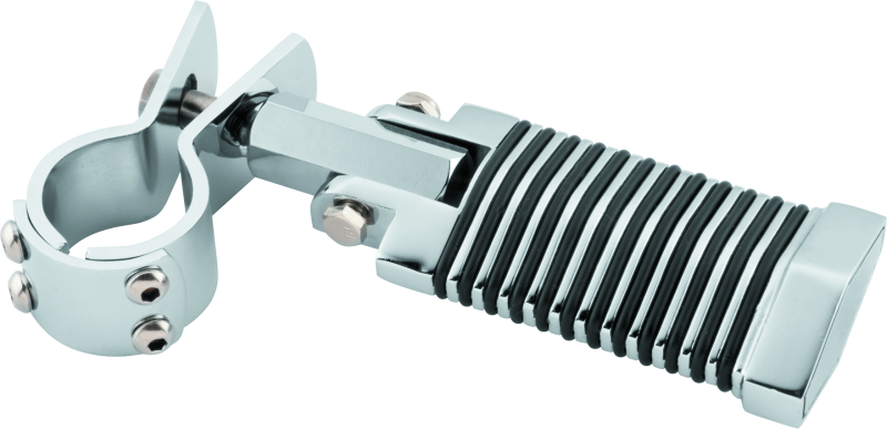 Gorgeous chrome and rubber inserts for a beautiful design. Deep, high-quality chrome finish with durable rubber means many years of service. 1 in. to 1-1/4 in. clamps allow you to install to frame rails or engine guards, which provides relief on long rides.