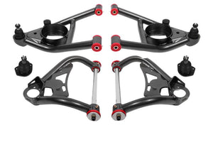 Added to the factory 2 degrees of caster, this allows you to achieve up to 6 degrees of total positive caster. This gives you improved geometry and increased lateral grip during cornering situations. The upper arms also have revised cross shaft geometry and shorter overall length, requiring less shim stack to achieve negative camber on lowered cars, or race and pro touring vehicles with aggressive alignments. The combination of cross shaft design and the shortened overall A-arm length gives you a improved camber curve through the front suspensions range of motion.BMR Suspension AA033 Non-Adjustable Upper and Lower A-arms are available in black hammertone and red powdercoat for long-lasting good looks. Installation time is 4-5 hours. Proudly made in the U.S.A.Control arm hardware kit RH006 (Includes upper and lower control arm hardware - Highly Recommended) also available. Application Guide