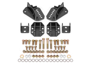 Increase traction and add ride height adjustability to the rear of your 1964-1972 GM A-Body with a Coil-Over Conversion Kit from BMR Suspension. OE-style lowering springs can drop the vehicle, but do so at the expense of suspension and shock travel. By utilizing a conventional coil-over, the vehicle can ride at a lower ride height, while still retaining full suspension travel. BMR manufactures its Coil-Over Conversion Kits from CNC-laser cut, CNC-formed 1/4-inch steel plate for strength, lightweight, and precise fitment. These also give you five mounting positions for the coil-over shock. This allows for easy instant center and anti-squat changes, so you can fine-tune the car(TM) s rear suspension geometry. Whether you want to aggressively lower your A-body or you want the added suspension control you get with coil-overs, BMR makes it easy to add coil-overs to the rear of your car.Designed for street performance, drag race, and handling applications, BMR makes its coil-over brackets from strong 1/4-inch laser-cut steel plate. These plates simply bolt in place and allow for commonly available coil-over shocks to bolt in. This kit is designed to work with any coil-over with a 1.25-inch wide bushing and -inch bolt hole. When performance is a must, rely on BMR Suspension!BMR Suspension(TM) s CCK402 Coil-Over Conversion Kit is available in black hammertone and red powdercoat for long-lasting good looks. Installation time is 2-3 hours. Proudly made in the U.S.A.!