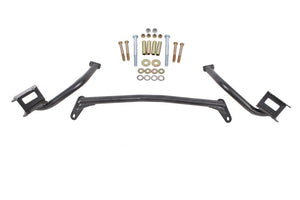 Increase stiffness and reinforce the torque boxed in your 1979-2004 Mustang with Upper Torque Box Reinforcement Braces from BMR Suspension. The Fox-chassis Mustangs were not known for being super strong. When large amounts of torque are applied to the chassis, the factory torque boxes are known to crack and rip. This causes all kinds of rearend alignment issues, poor performance, and unsafe driving conditions. Designed from heavy-duty DOM steel tubing and CNC-laser cut, CNC-formed steel plate, BMR?s Upper Torque Box Reinforcement Braces are designed to bolt into the ?79-?04 Mustang chassis, adding strength to the upper control arm mounts. This means you can put as much power and torque to the wheels as possible, without fear of damaging this critical area of the chassis.
