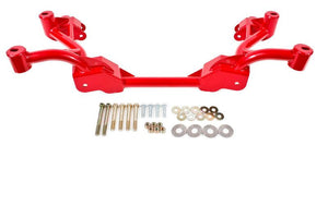 Reduce weight, increase frontend rigidity, and add clearance for large-tube headers and turbo kits with a Tubular K-members from BMR Suspension. BMR Tubular K-Members are designed to provide a lightweight alternative to the heavy and bulky factory K-member. Manufactured from 1-1/2-inch x 0.120 wall DOM steel tubing and 3/16-inch laser cut, CNC-formed steel plate, BMRs K-members give you a lightweight, extremely strong K-member. Every BMR K-member is 100-percent bolt-in and requires no modifications for fitment. The K-members are built with provision for either factory or manual steering racks.Designed for street performance, drag race, and road race applications, BMR Suspensions Tubular K-members drop weight and add loads of structural rigidity. The unique K-member design feature integrated engine mounts that weigh significantly less than factory engine mounts. This additional weight reduction allows BMR to use larger diameter tubing and thicker mounting plates for additional strength over other companies K-members. When combined with BMRs lower A-arms, a minimum weight reduction of over 30 pounds is common. With other lightweight frontend parts, weight reduction of up to 100 pounds is easily achievable.BMR Suspensions KM006 Tubular K-Member is available in black hammertone and red powdercoat for long-lasting good looks. Installation time is about 4-5 hours. Proudly made in the U.S.A.!NOTE: Not compatible with OE lower control arms.