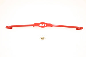 Reduce chassis flex and increase handling and performance on your 3rd Gen GM F-body with a Two-Point Strut Tower Brace from BMR Suspension. The F-body chassis flexes dramatically, even with mild amounts of torque and horsepower. BMRs Strut Tower Braces are manufactured from a mix 1 -inch DOM steel tubing and laser-cut 1/4-inch steel plate. This design adds loads of strength to the front frame and suspension. These Strut Tower Braces are engineered to considerably strengthen the chassis. The STB003s connect the strut mounts to reinforce unibody and suspension.BMR has designed the STB003 for the street performance, drag race, and handling applications. This two-point design solidly links the front strut towers, added strength to the entire front unibody and suspension. BMRs STB003 Strut Tower Brace is 100% bolt-in. This means they can be easily installed with simple hand tools, and no welding is required. When performance is a must, rely on BMR Suspension!BMR Suspensions STB003 are available in black hammertone and red powdercoat for long-lasting good looks. Installation time is less than 1 hour. Proudly made in the U.S.A.
