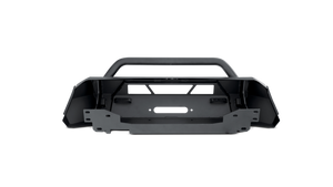 The 2016-2023 Toyota Tacoma Hiline Bumper is an excellent choice for enhancing clearance and improving approach and departure angles. Featuring a sleek, low-profile design, it comes with a welded bull bar, light fitment options, integrated shackle recovery points, and a license plate bracket.