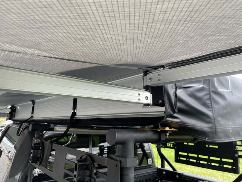 Introducing our versatile awning, designed to easily mount to virtually any roof rack or bed rack. Crafted from durable 280GSM poly cotton rip-stop fabric, it features a polyurethane coating for 2500mm waterproofing, ensuring reliable protection from the elements. This awning provides an impressive 88 square feet of covered space, perfect for shade, lounging, cooking, and more. The self-contained unit includes rugged, lightweight extruded aluminum with alloy hinges and telescopic legs with twist-lock fixtures, adjustable from a minimum height of 55" to a maximum height of 102". The heavy-duty travel cover is made from sturdy, UV-resistant 1000G PVC-coated tarpaulin material with heavy-duty zippers. Designed for convenience, it allows for 1-person setup and teardown. Additionally, an optional wall kit is available to enhance your outdoor experience. The package includes stakes and tie-down straps to secure the awning in windy and inclement conditions, along with 3 robust powder-coated brackets, 2 tie-down straps, 8 guy ropes, 8 stakes, and mounting hardware. Upgrade your adventures with this high-quality awning!
