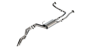 This 2.25" True Dual High Clearance Climber / Rock Crawler BORLA Cat-Back system was designed with ground clearance in mind. It will enhance the power and sound of the Frontier equipped with 3.8L engine. The muffler contains an internal H-Pipe for increased performance and improved sound. The system features the classic S-Type sound that delivers a powerful performance sound with no drone. It features 2 full turn down tail pipes with brushed 2.25" turn down tips. BORLA Cat-Back & Axle-Back exhaust systems feature patented straight-through and multi-core technology to unleash hidden horsepower. Increased exhaust velocity adds power, driving excitement, fuel economy, and the distinctive BORLA Sound of Power respected by motoring enthusiasts everywhere. Each system is built from premium, high-quality T-304 austenitic stainless steel, superior to T-400 series knockoffs (such as 409), to give you the absolute best in performance and durability. The entire system is made of T-304 stainless steel and utilizes computer numerical control (CNC) manufacturing techniques that ensure an accurate fit. All this is backed by our unsurpassed Million Mile Warranty. System Features: Cat-Back System True Dual system High Clearance Climber / Rock Crawler design Dual Side Exit 2.25" Brushed T-304 Stainless Steel Turn Down Tips S-Type Sound Level T-304 Stainless Steel Construction Bolt-On Installation Million Mile Warranty