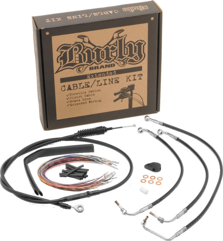 Burly Brand cable/line install kits take the guesswork out of installing your handlebars. Burly has engineered each package to end the guesswork, mismatched lines and floppy cables by including throttle cables, clutch cable, brake line and wiring specific to the year, make and modelof your bike.