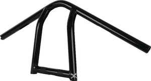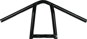 The Jim is bent as a narrow clamp mount handlebar for splitting lanes and taking names. At 26 in. wide this is by far the skinniest bar Burly offers. Made with 1-inch steel tubing featuring slots for internal wiring and crowned for throttle by wire applications. Welded and mandrel bent for precision fit.