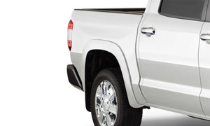 Give your truck the appearance of an upmarket trim level with Bushwacker "OE" Style Fender Flares. They install in minutes with no drilling. And, they're designed specifically to complement your vehicle's styling, so it looks like it came from the factory that way, with a fit, finish, and level of protection that exceeds original equipment. These flares are now available pre-finished to match the paint on your new truck or SUV, plus they have the edge trim and stainless steel hardware pre-installed for quick and easy installation and a perfect fit-no drilling required. Made from sturdy Dura-Flex 2000 material, these flares are warp-resistant and tailor made for each application. Despite their bolted-on appearance, these flares install easily without drilling for a secure fit. And since they're ready to install out of the box, there's no waiting on paint, and no hassle with installation.