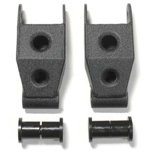 Our extended shackle is designed around using Deaver leaf springs but can also be used with stock springs. We’ve updated the design to a fully boxed/sealed version so they don’t have the dimple dies. These are longer length than the stock shackles and allow for maximum wheel travel. Using polyurethane bushings keeps them from deflecting under articulation like the stock ones and also allows them to pivot smoother and unrestricted. The stock shackles are too short and limit droop. These are 1.5" longer than stock. Since the shackles are longer, they will lower the ride height compared to the stock shackles. These fit the OEM 3" wide leaf springs (3.50" with bushings).On Bronco's you need to clearance the body seam behind the shackle to it doesn't hit it on compression unless you use a drop hanger which will raise the ride height back up. These are laser cut from HRP&O steel, CNC formed, MIG welded and powder coated textured black. These shackles are 6" eye to eye in length. Fully boxed design Extended length Increased wheel travel Smoother action and less deflection Made in the USA.