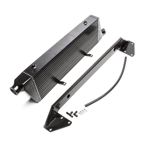 Remove the overworked factory intercooler from your 2004-2007 WRX or STI in favor of the Black COBB Front Mount Intercooler Kit. Featuring a massive 30" x 10.35" x 3.5" Bar and Plate core and 2.5" piping. The intercooler core is finished in a black heat-dissipating coating. The piping is mandrel bent aluminum and finished in wrinkle black powder coat to keep the engine bay tidy. An included BPV adapter plate will allow installation of the factory bypass valve, COBB XLE BPV, or any valve that has factory-like fitment. The cold side piping includes an integrated bung for an Intake Air Temperature sensor which makes for a straight-forward Speed Density conversion. The COBB FMIC is designed to work with the COBB SF Intake and Airbox combination though it does require trimming the SF Airbox with included template. Compatibility with other intake kits cannot be confirmed.