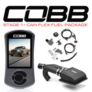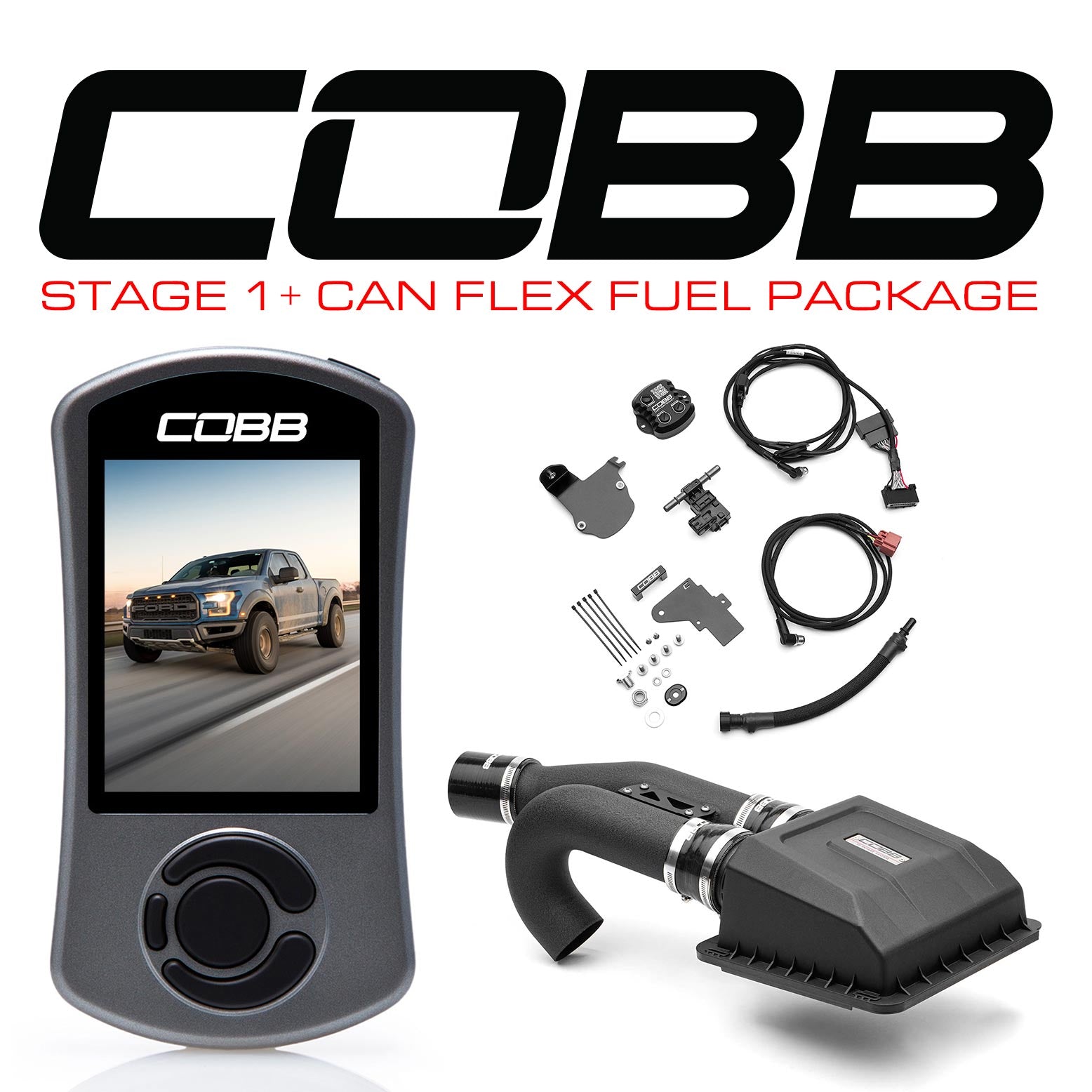 The Stage 1 + CAN Flex Fuel Power Package includes an Accessport V3, COBB Intake System, and the CAN Flex Fuel Upgrade for your Raptor 2017-2020.