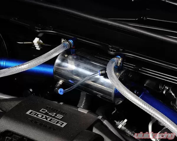 The Cusco Oil Catch Can comes Polished to a mirror finish with Cusco blue fittings and bracket, this kit is attractive and functional. The easy to read oil level indicator doubles as the drain tube, just use the quick disconnect fittings and drain the can. It bolts on in minutes using normal hand tools.