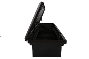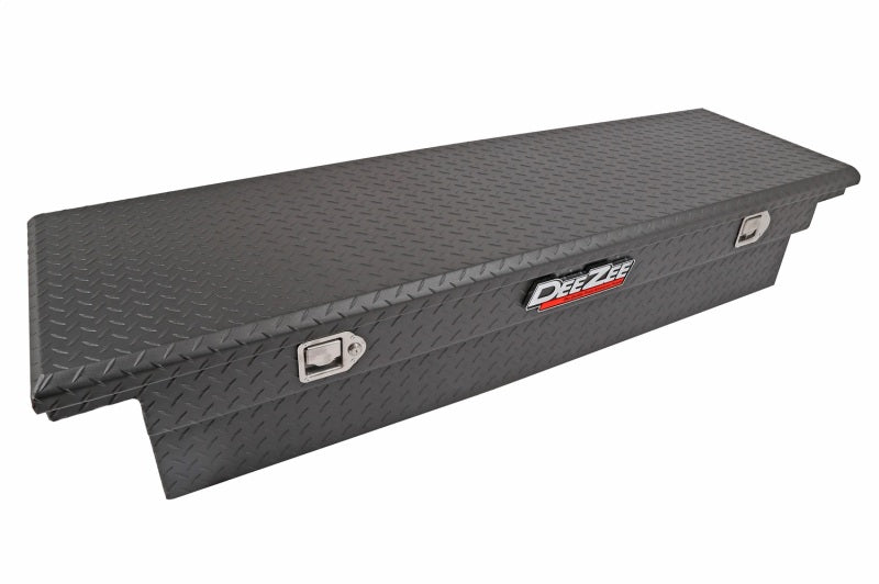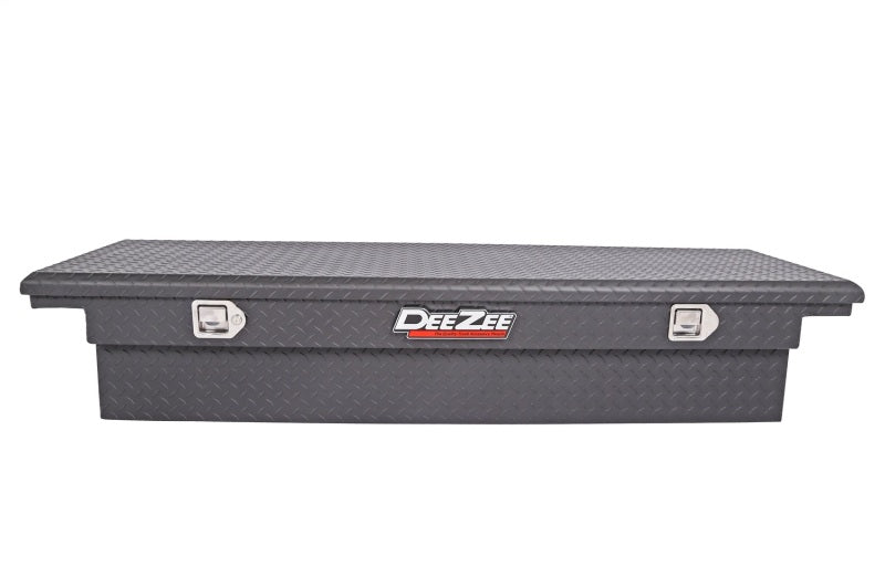 Dee Zee Tool Box - Red Label Single Lid Crossover. Constructed of heavy duty Brite-Tread aluminum with low profile design. Texture black powder coat, provides a matte black finish while it protects and prevents oxidation. Crown style lid with a full pan double-V stiffener for superior rigidity. Other features: lockable stainless steel paddle handles, dampened gas shocks, closed cell foam gasket, and self-adjusting strikers. Removable plastic tool tray to help keep small items organized. Installation Instructions