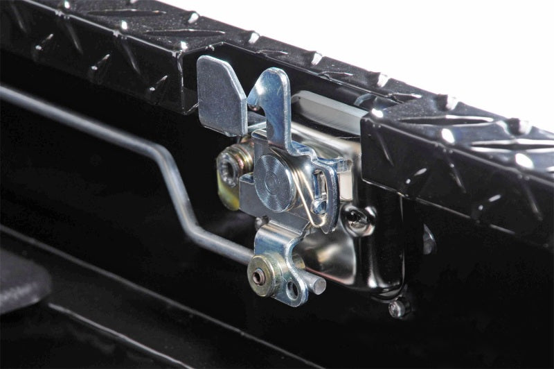 Dee Zee Tool Box - Red Label Single Lid Crossover. Constructed of heavy duty Brite-Tread aluminum. Crown style lid with a full pan double-V stiffener for superior rigidity. Other features: lockable stainless steel pull handles, dampened gas shocks, closed cell foam gasket, and self-adjusting strikers. Removable plastic tool tray to help keep small items organized. Installation Instructions
