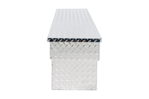 Dee Zee Tool Box - Specially Narrow Crossover box. Constructed of durable Brite-Tread aluminum with narrow design for subtle look. Other features: lockable push-button handles, dampened gas shocks, closed cell foam gasket, and self-adjusting strikers. J-Bolt mounting hardware included. Ideal for todays short bed crew cab or any truck that doesnt want to lose valuable bed space.
