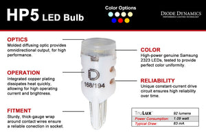 Diode Dynamics 194 LED Bulb HP5 LED - Blue Short (Single) - DD0333S