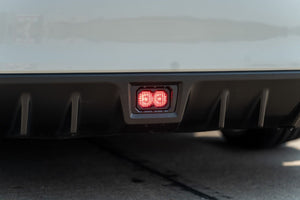 OEM Fit and Finish. Each kit includes a custom-molded bracket designed specifically for the WRX/STi, allowing the C2R to mount flush in the rear bumper in the same location as JDM-model rear fog lights. The bracket itself features a grained texture that matches the surrounding trim pieces for a clean, OEM-style appearance.