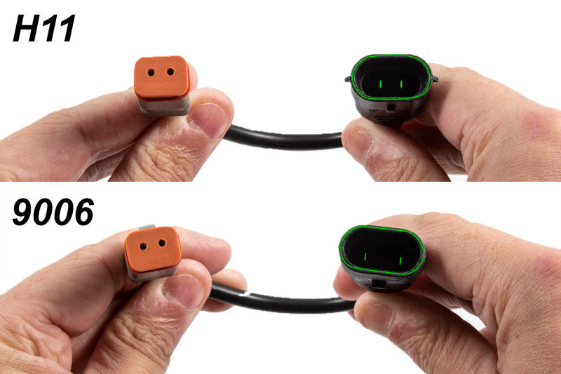 Plug and Play. Thanks to custom-molded brackets, the SS3 Fog Light Bracket Kit can be installed on your vehicle in minutes. Simply remove your factory fog light assembly and ours will bolt right in its place! Both 9006-size and H11-size DT adapter wires are included with the kit. Select the adapter wire that matches your factory connector to connect the lights to your factory bulb sockets - no additional wiring needed!