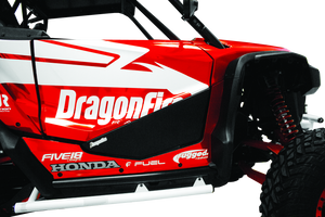 The DragonFire Racing® Door Filler Panel Kit is a cost-effective, aluminum cover that prevents dirt, mud and and other debris from coming through the open space on the factory Honda® Talon doors.