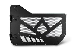 DV8 Offroad Jeep JL Half Doors (Front). The DV8 Offroad Jeep JL half door was designed with function and customization in mind. All of the aluminum screens are removable and can be painted or left as they are. These doors feature anti-rattle gaskets all the way around them and a two stage locking mechanism for a secure fit. Features: Perforated Aluminum Mesh Screens, All Aluminum Doors To Cut Down Weight, DV8 Textured Powder Coat Mirrors Included, 2 Stage Locking Door Latches, Anti-rattle Rubber Gaskets