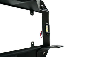 The DV8 Jeep JL Spare Tire delete not only covers the hole left by removing your spare tire mount, but also features a license plate mount with included plate lights. On each side of the delete, a pod light can be mounted to provide supplemental lighting when off-road. The back-up camera and third brake light are mounted directly into the DV8 spare tire delete, maintaining full functionality.?