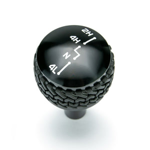 DV8 Off Road's shift knobs are made from billet aluminum and feature our patented 'Tired Tread' design grip which not only feels good when resting your hand on it, but also provides a better tactile feel when it comes time to throw a shift. Features: 4WD Shift Knob 'Tired Tread' Design Grip, Material: Billet Aluminum, Color: Black, Sold As: Each, Fits: 2007-18 Jeep JK.