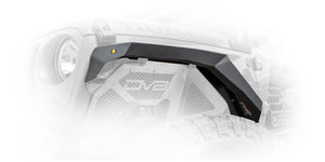 FDGL-02 2018+ Jeep Gladiator Armor Fenders (Set of 4). The DV8 Offroad FDGL-02 Armor Fenders were designed for maximum clearance when traversing narrow passages that would rip off an ordinary fender. They bolt on with no drilling required and feature a turn signal light that can integrate into the factory harness. Features: Slim design, Textured 3 stage powdercoat, solid steel construction, Light weight, Bolt on installation, Standard DV8 warranty, Aluminum vents can be color keyed to the Jeep.